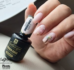 Gama rubber base Flexy de la Gelaxyo este, de departe, cea mai buna varianta in materie de baze rubber. Este disponibila in mai multe variante de culori notate cu F1 pana la F5. Prezinta o formula cauciucata, putand fi folosita atat pentru manichiura cu oja semipermanenta, cat si cu gel UV. Datorita vascozitatii medii, poti modela cu usurinta apexul. Se poate indeparta usor cu solutii remover sau cu acetona.